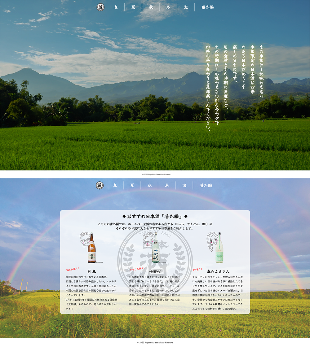 企業実習で、実習生企画としてメンバー3人でオススメの日本酒を紹介するサイトを作成しました。
